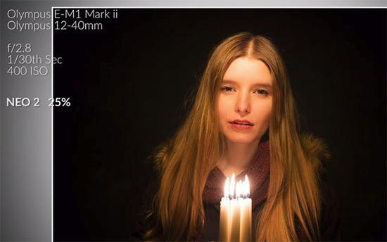 将色温调节到相对接近烛光色温的样子(本例中,摄影师调到了3250k),混合后的光线效果如下图所示:
