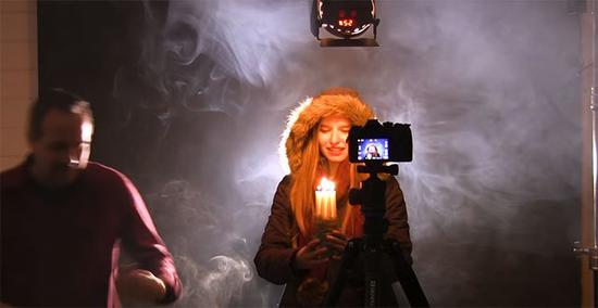摄影师gavin hoey在一个视频中讲解了棚内人像拍摄的实例:拍摄一张背景冷色,模特手持暖色烛光的浪漫气息人像写真,其核心的技术要点是冷暖对比和光比的控制。我们在这里通过视频的截图,简单解析一下: