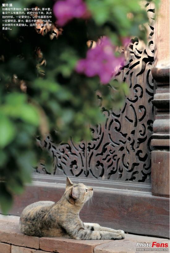 拍摄细节景物时,首先一定要多、要丰富,看见什么有意思的,都把它拍下来;其次拍的时候,一定要突出,让它在画面当中一定要明显、要大;最后才是技巧的运用。比如使用长焦距镜头,运用大光圈进行背景虚化。