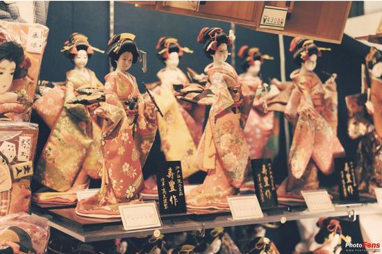 拍摄纪念品的时候,最好分门别类地进行拍摄,比如摆在一起的罐子拍一张,放在一起的玩偶拍一张。这样,一张照片中的一类物品,既协调统一,而每一个小物之间又有不同,显得非常丰富。当然,拍摄时,最好看看店家的脸色,如果人家实在不让拍,那还是放弃吧。