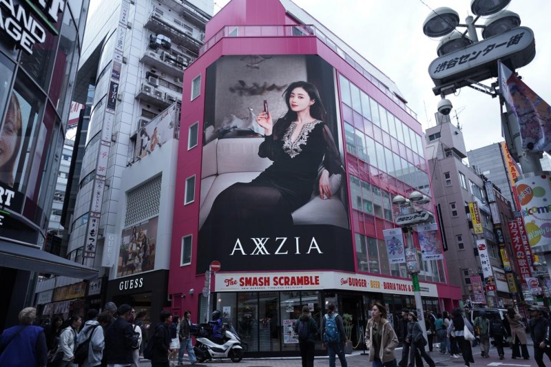 活动当天,晓姿在涩谷街头投放了循环播放的8面大屏广告,官宣亚太区品牌大使蒋欣的同时,为新品强势造势。