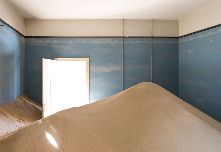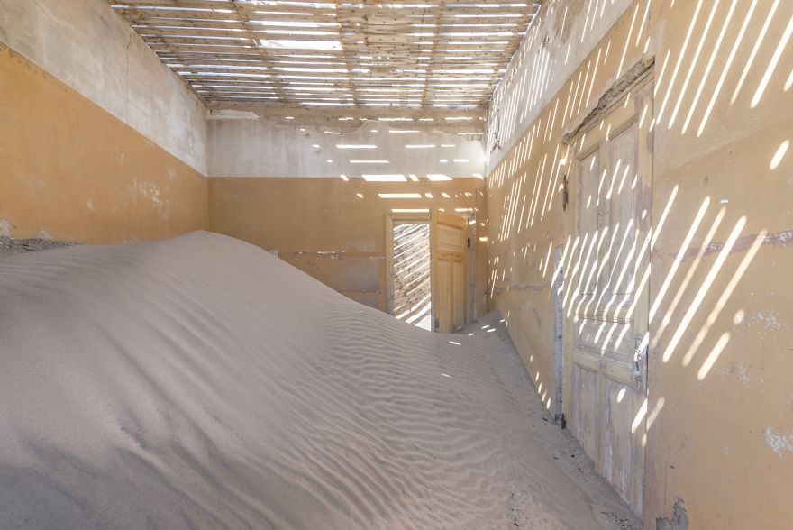 kolmanskop是纳米比亚南部纳米布沙漠的一个废弃城镇,离城市luderitz只有几公里远。这里是以一位名叫约翰尼·科尔曼(johnny coleman)的运输司机的名字命名的,他在一场中把扔在了一个小上。这里曾经是非常富有的采矿村,现在却因自然的侵袭成为了很受欢迎的旅游目的地,摄影师romain veillon前往创作了这组作品。