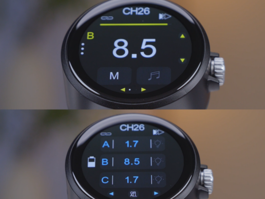 金贝tr-q8无线引闪器配备1.43寸超大oled高分辨率全彩触控屏幕,清晰、亮丽,无眩光,功耗更小更省电,参数设置均可通过手指触控滑动或点按完成,界面直观,操作如同智能手机般丝滑流畅。