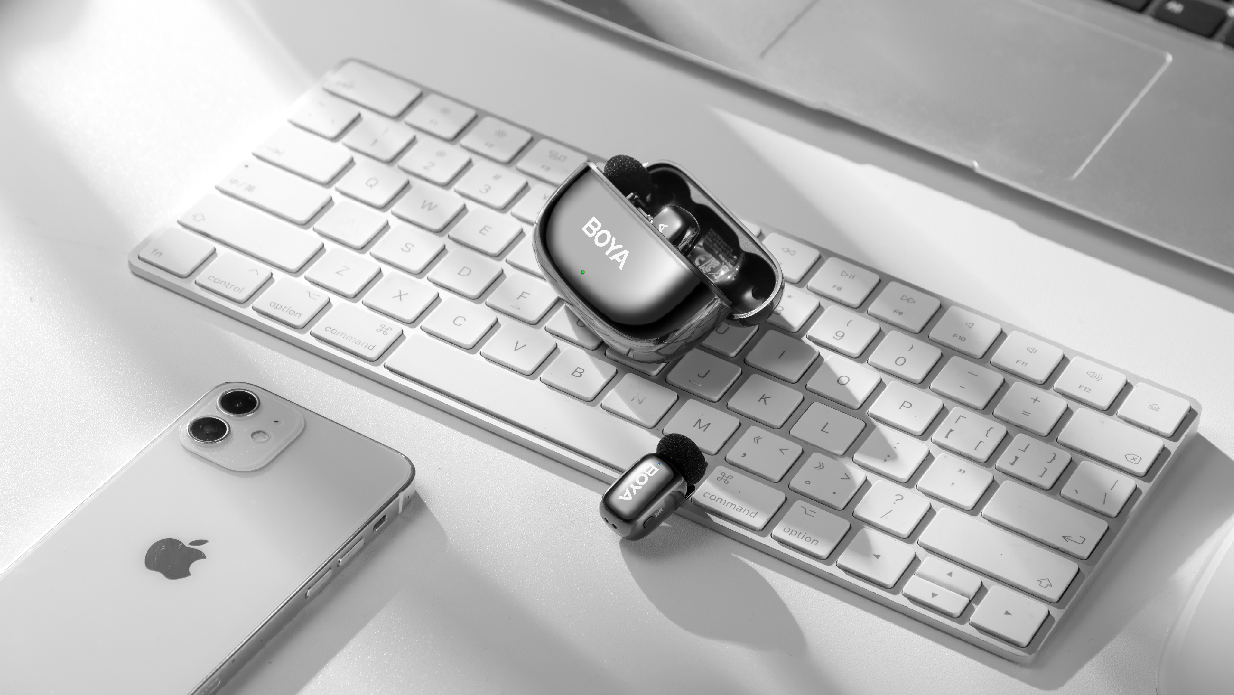 通过boya central app,用户可自由调节增益、降噪等级、声道模式、eq音效等参数,并支持固件升级,持续优化使用体验。此外,设备还具备低切滤波、静音开关、免插拔外放等实用功能,全面覆盖创作与会议需求。续航方面,单麦续航6小时,搭配充电盒可达30小时,支持多场直播或全天拍摄。设备提供type-c和lightning两种接收器版本,兼容手机、平板、电脑及部分运动相机,真正实现“即插即用”。