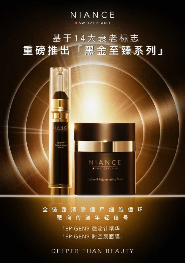 从瑞士阿尔卑斯的冰川能量到生命科学的前沿突破,从隐奢定制的专属体验到全程序贯的抗衰方案,niance 以「deeper than beauty」的坚定信念,在高端抗衰领域开辟出一条科学与美学共生的道路。epigen黑金至臻系列的重磅登场,不仅是品牌科研实力的极致展现,更标志着抗衰护肤正式进入「全程精准干预」的新时代。未来,niance 将继续以全球抗衰先锋的姿态,为更多人带来内外兼修的健康美肌与长寿体验,重塑抗衰护肤的全球新标准。